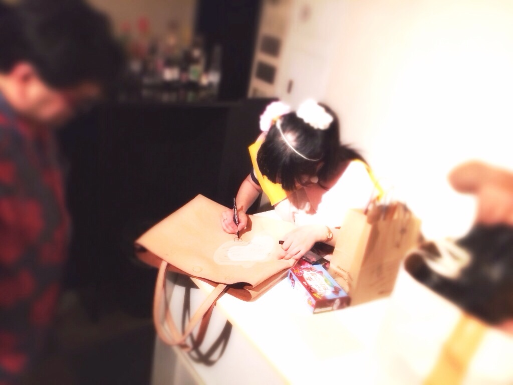 サインをしながら歓談したりと